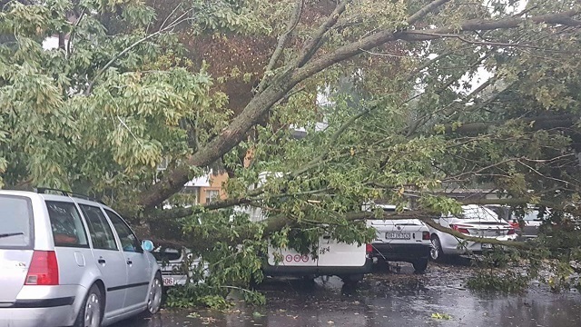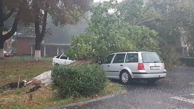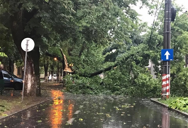 Hatalmas károkat okozott a Marosvásárhelyen végigsöprő vihar, fákat döntött ki, tetőket és reklámtáblákat rongált meg, jelentős a kár.