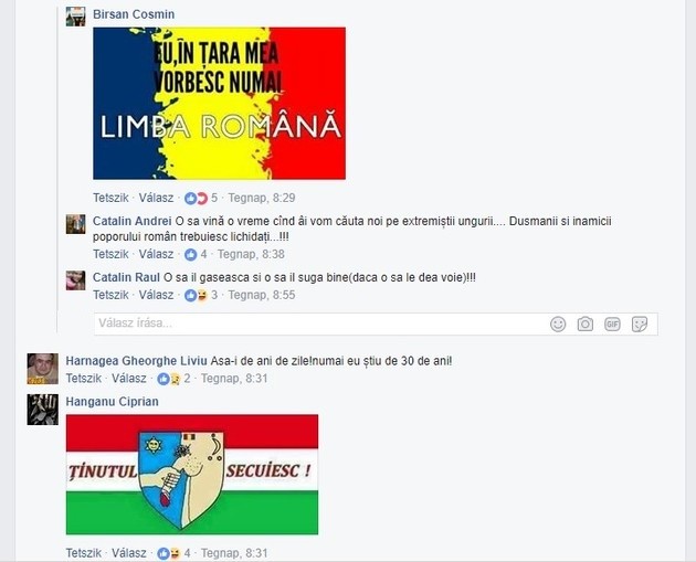 Székely zászlót égetve üzent egy román „hazafi” a magyaroknak, hogy Romániának csak egy zászlaja van, az a piros, sárga, kék. A hozzászólók között van aki a magyarok kivégzését szeretné.